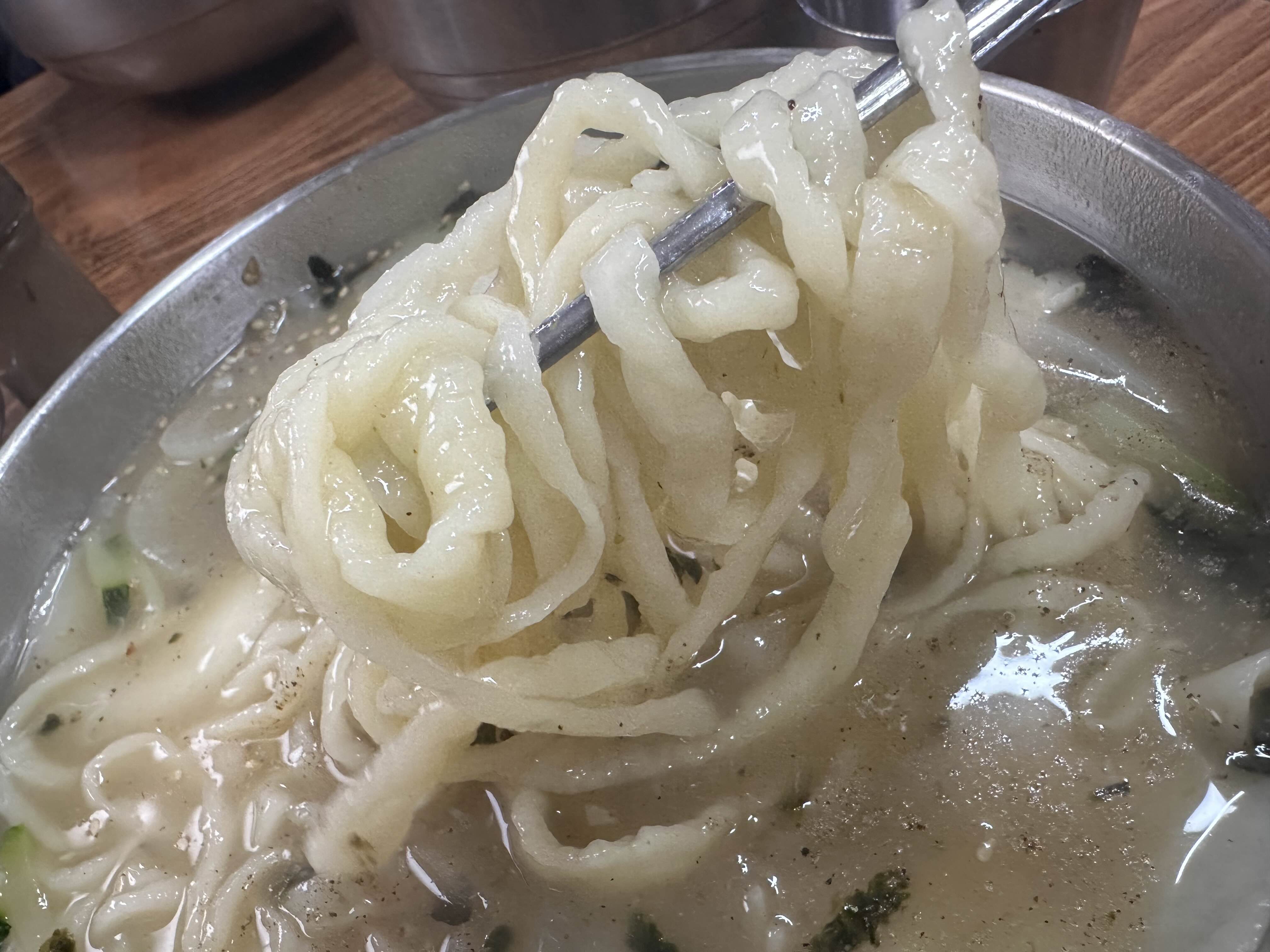 칼국수는 멸치 육수 베이스에 진한 국물 맛이