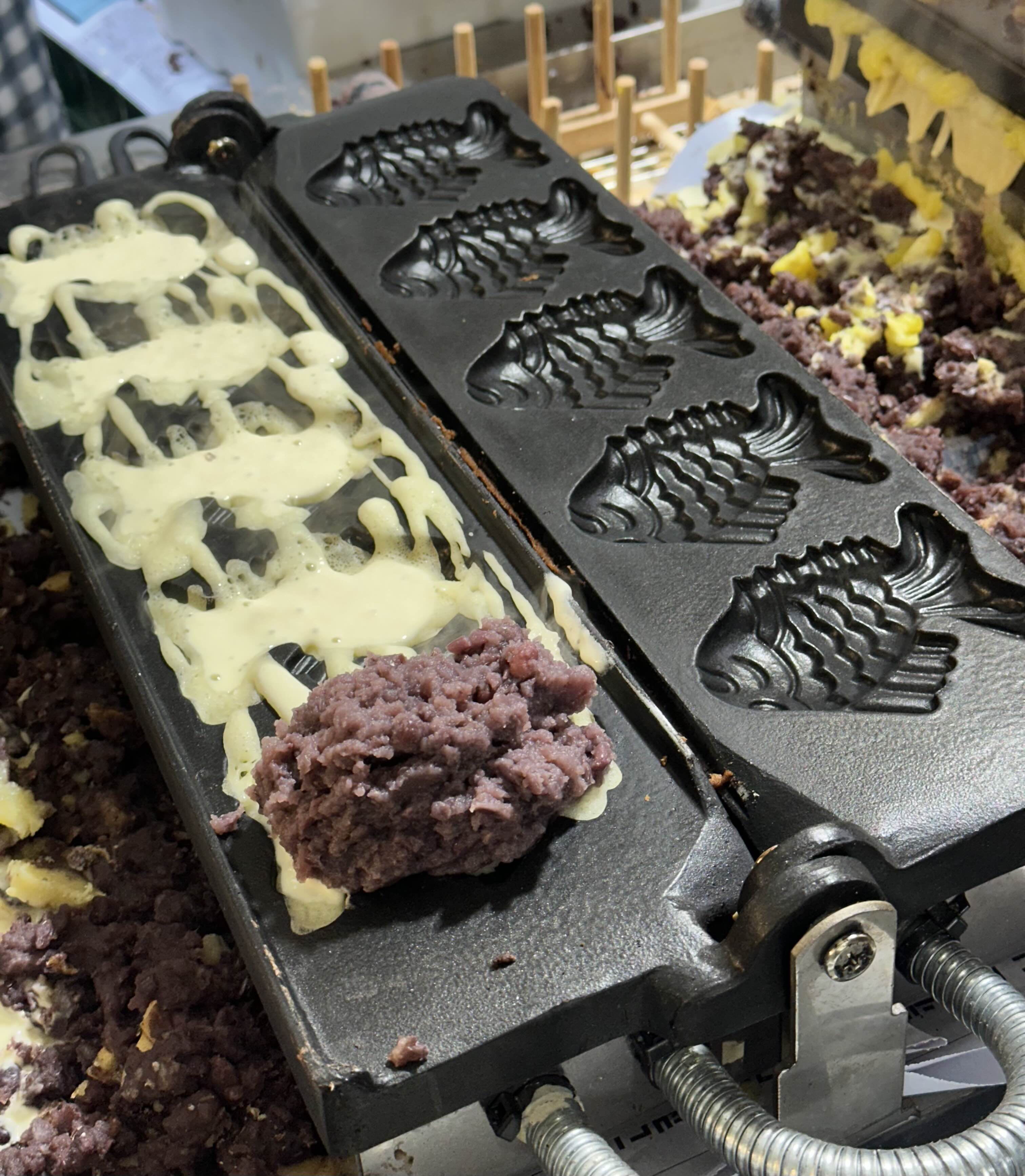 붕어빵이 구워지는 모습을 잠시 감상합니다.