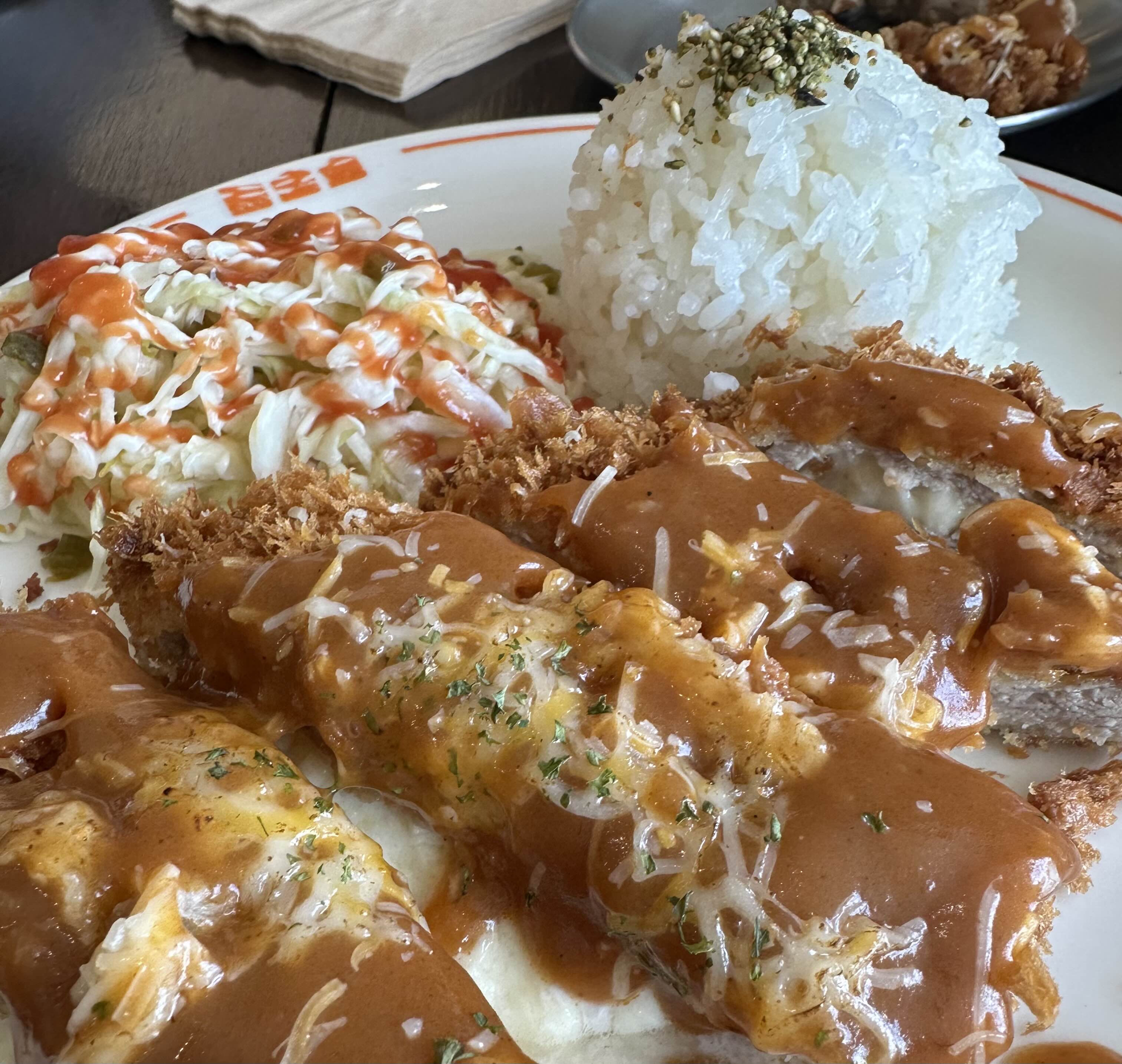 주문한 돈가스는 고기가 두툼하면서도 속에 치즈가 가득 들어 있습니다.
