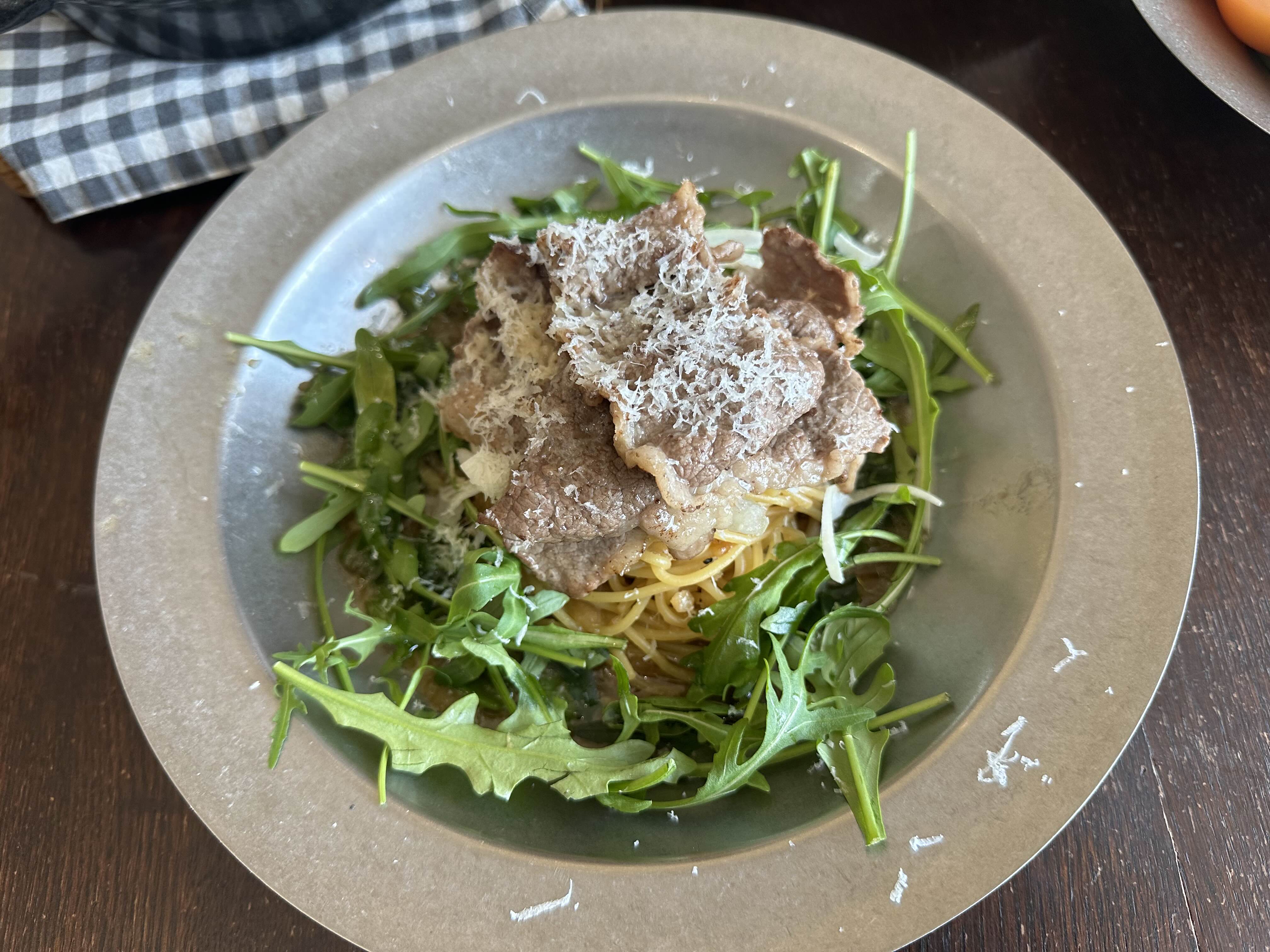부드러운 리코타 치즈에 신선한 샐러드 채소의 아삭한 식감, 여기에 상큼한 드레싱이 함께 하는 순간