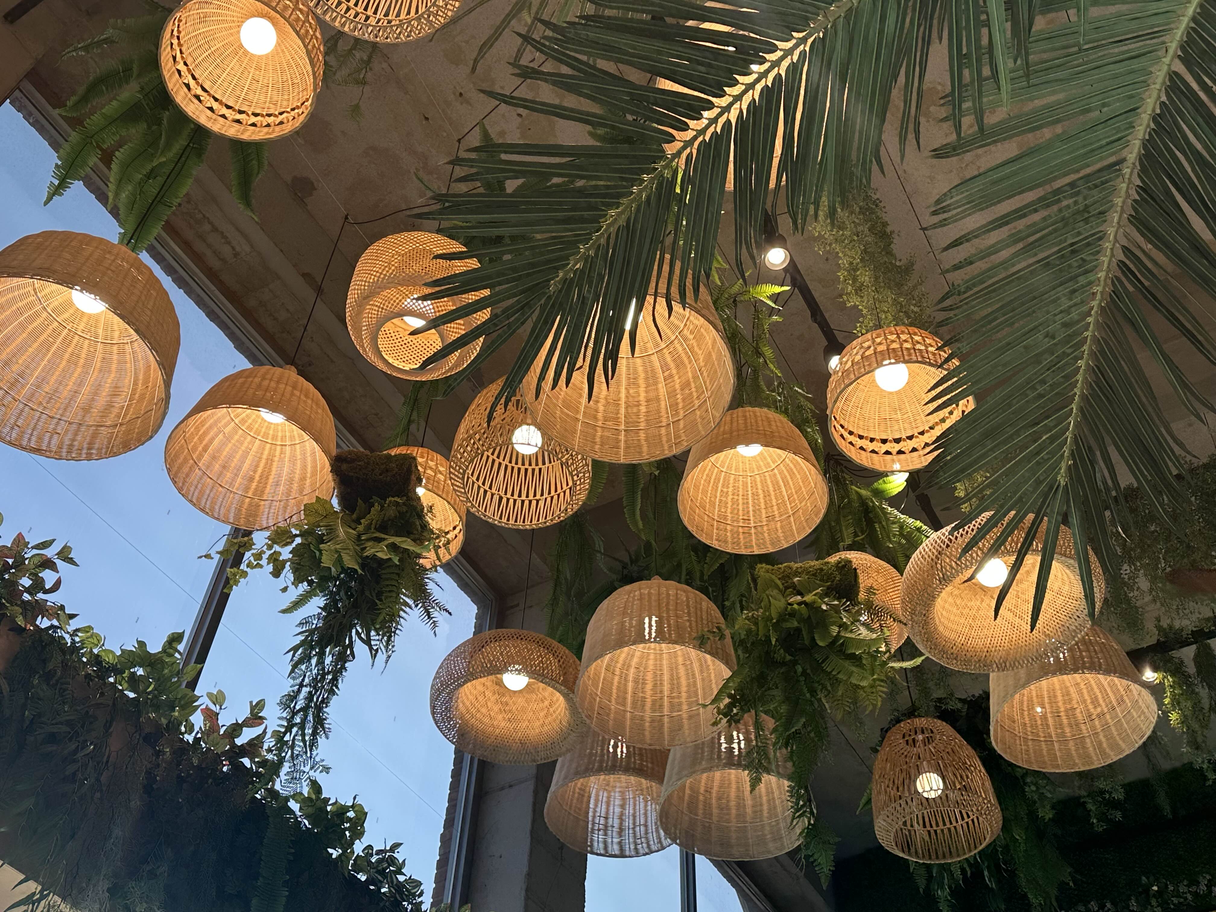 화려한 조명들 속에 초록빛이 가득한 정원