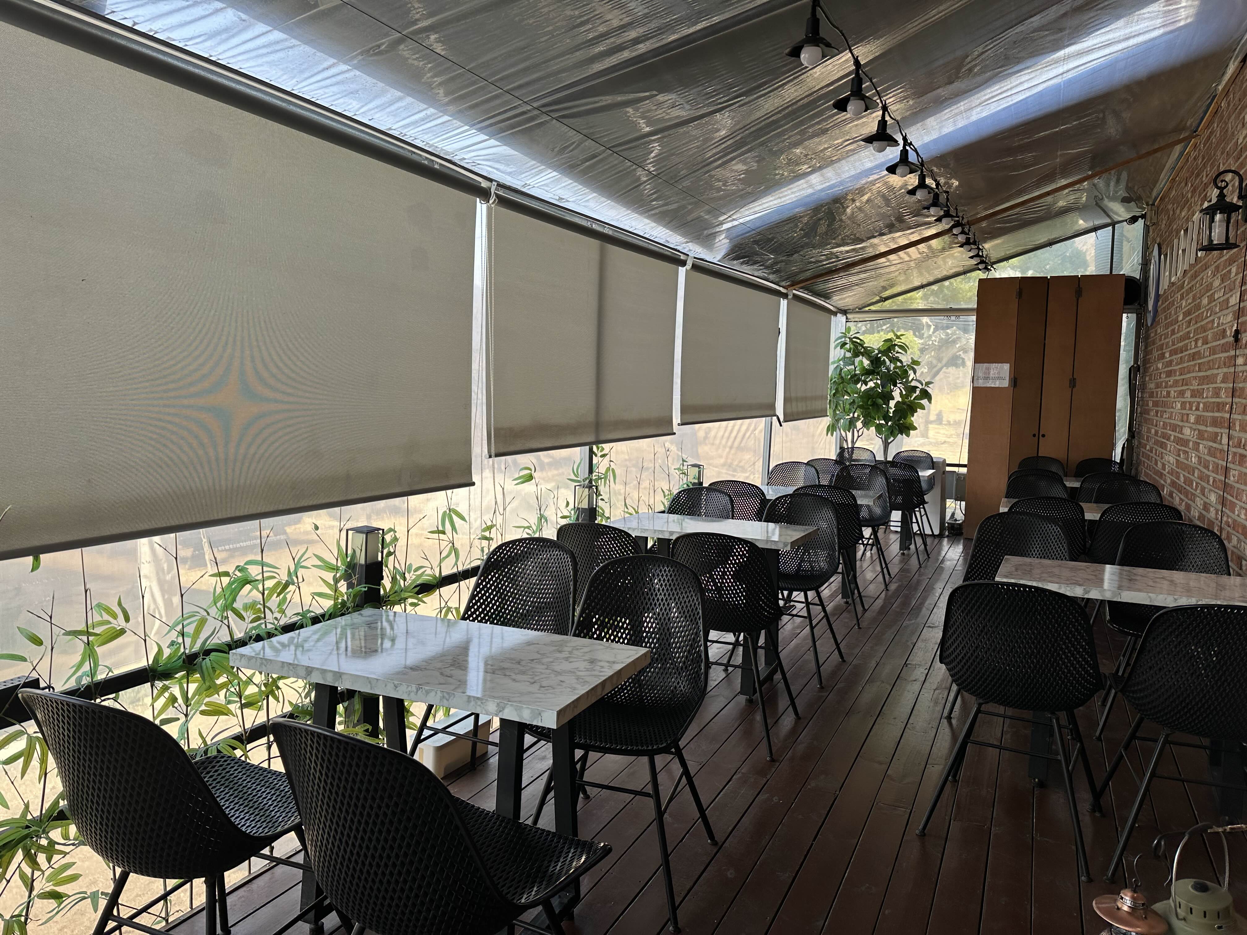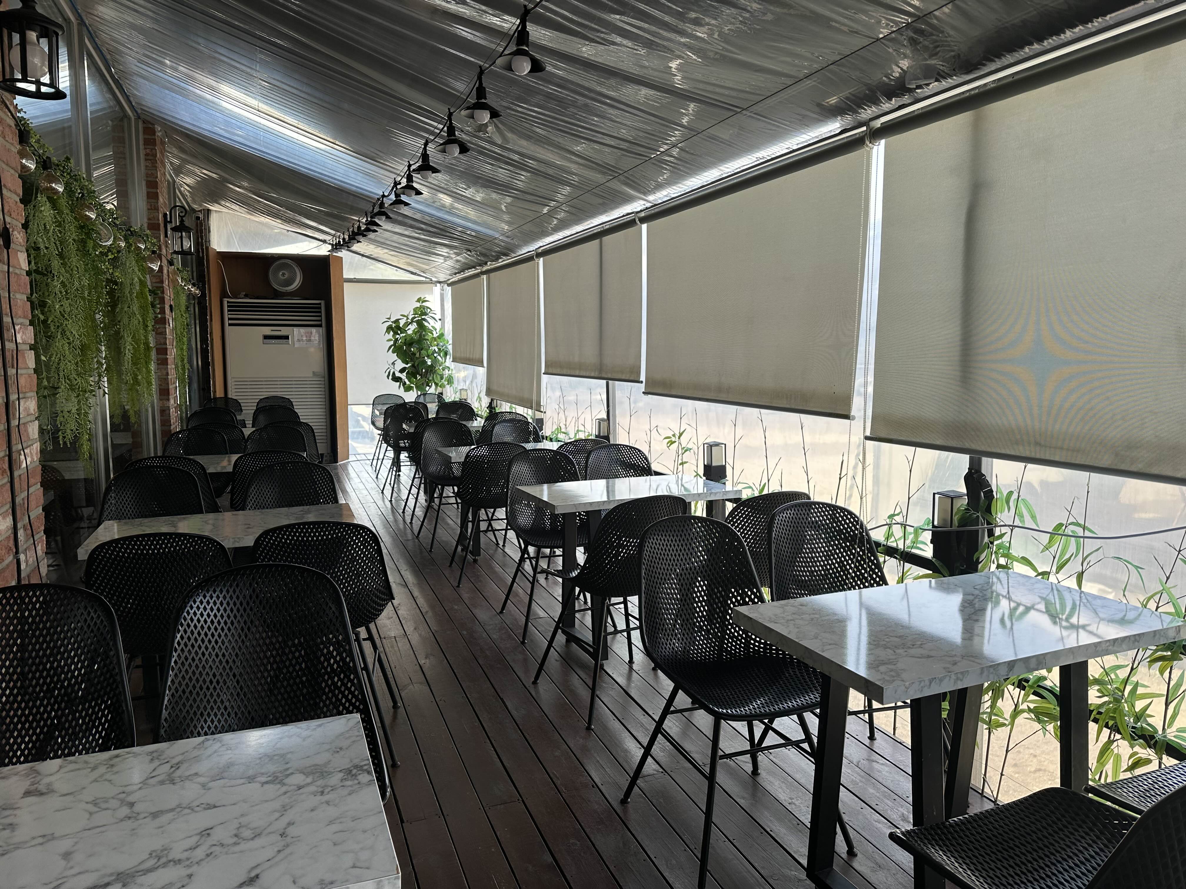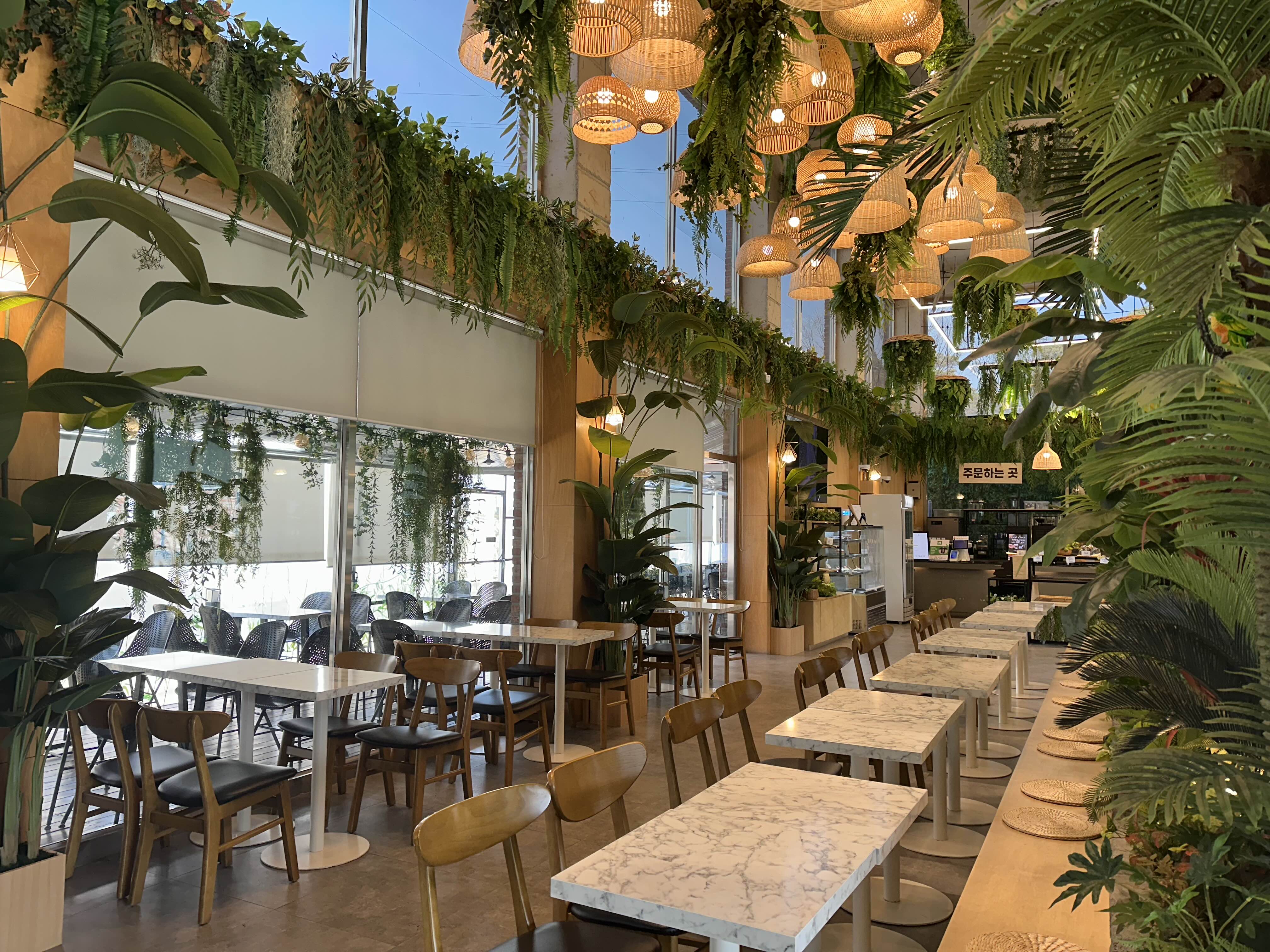 조명과 함께 푸른 정원으로 카페 한편의