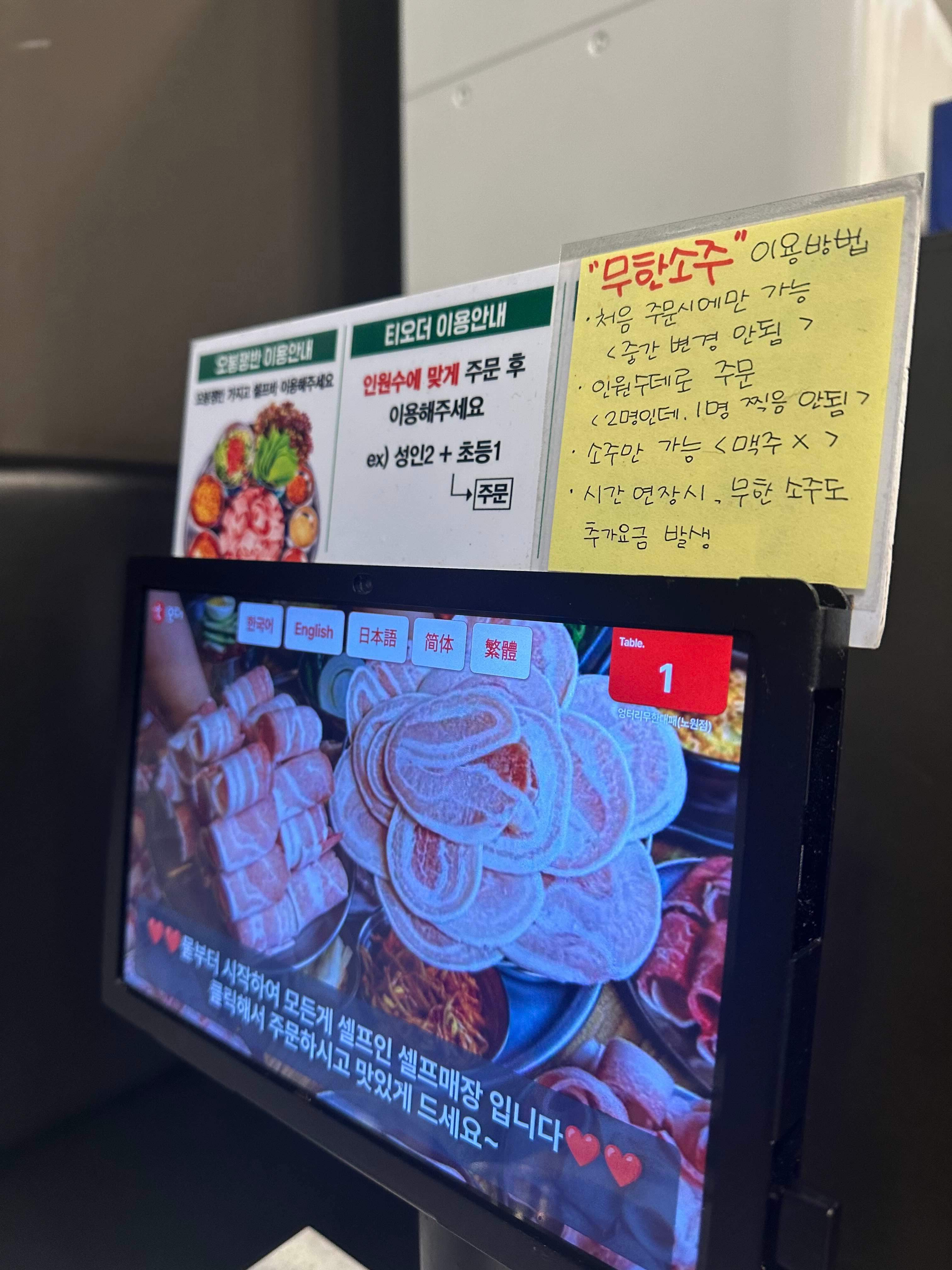 처음 방문으로  어떻게 해야 할지 우선 자리에 앉아 키오스크에  성인 / 아이 선택으로 주문을 한 후