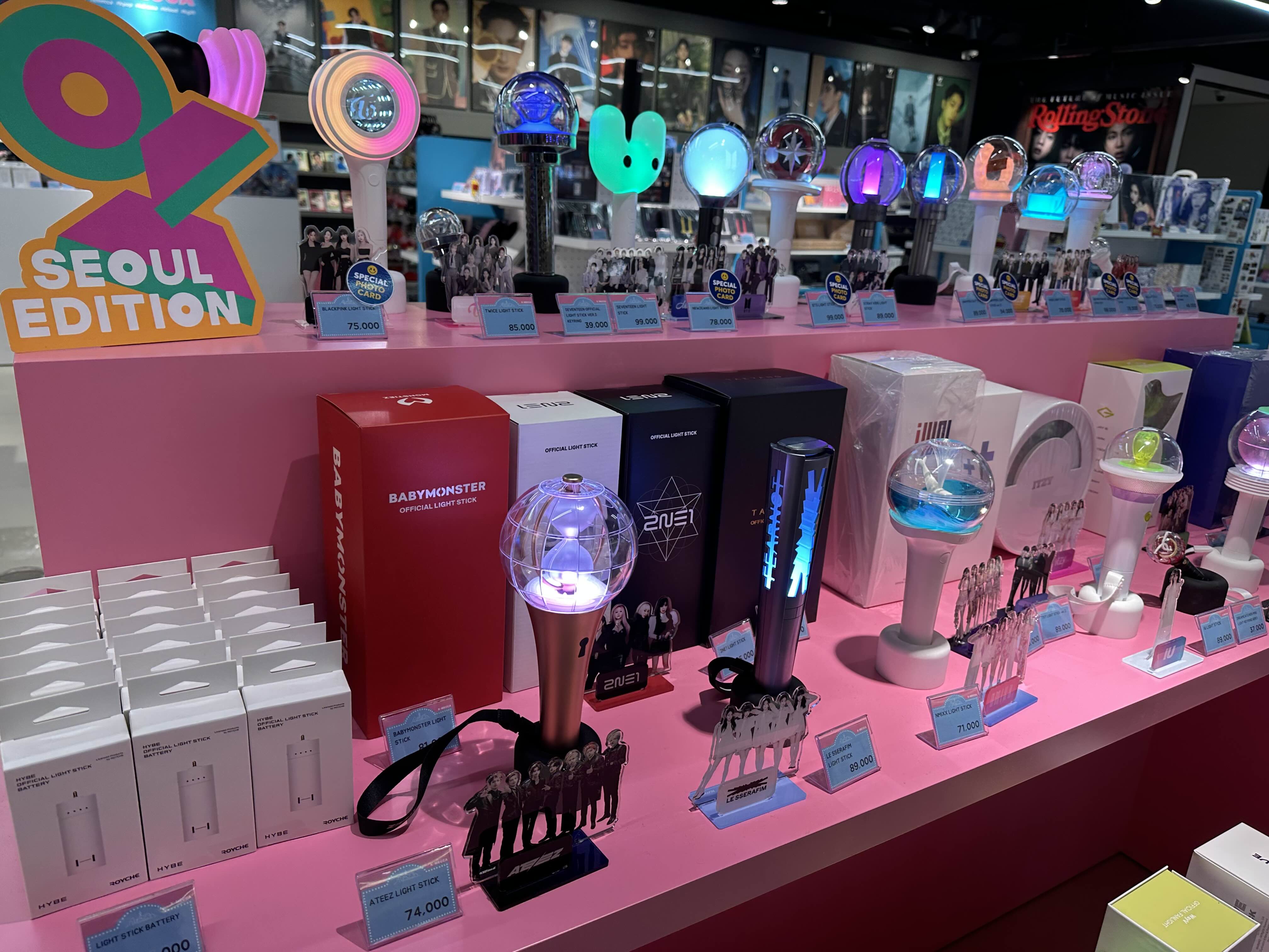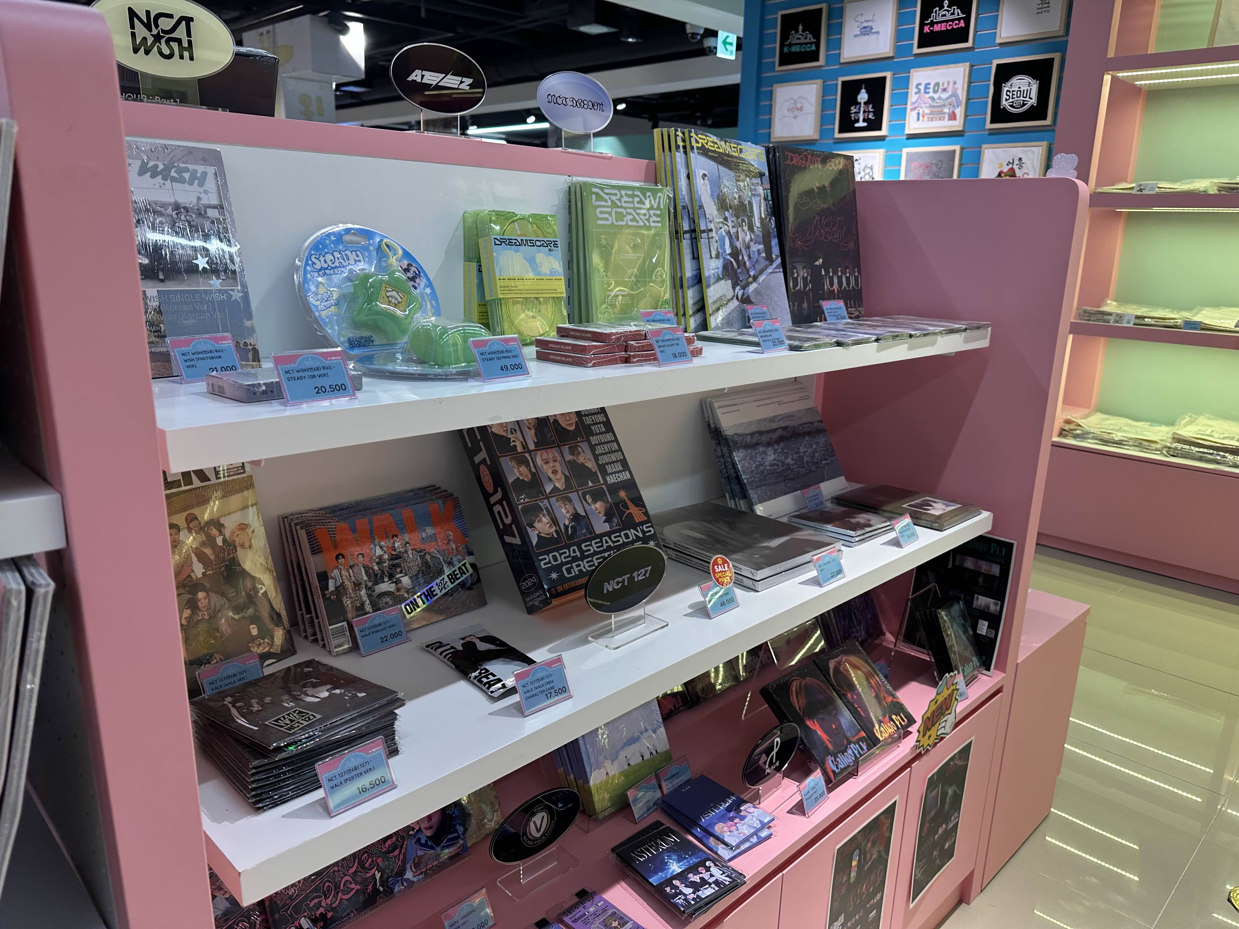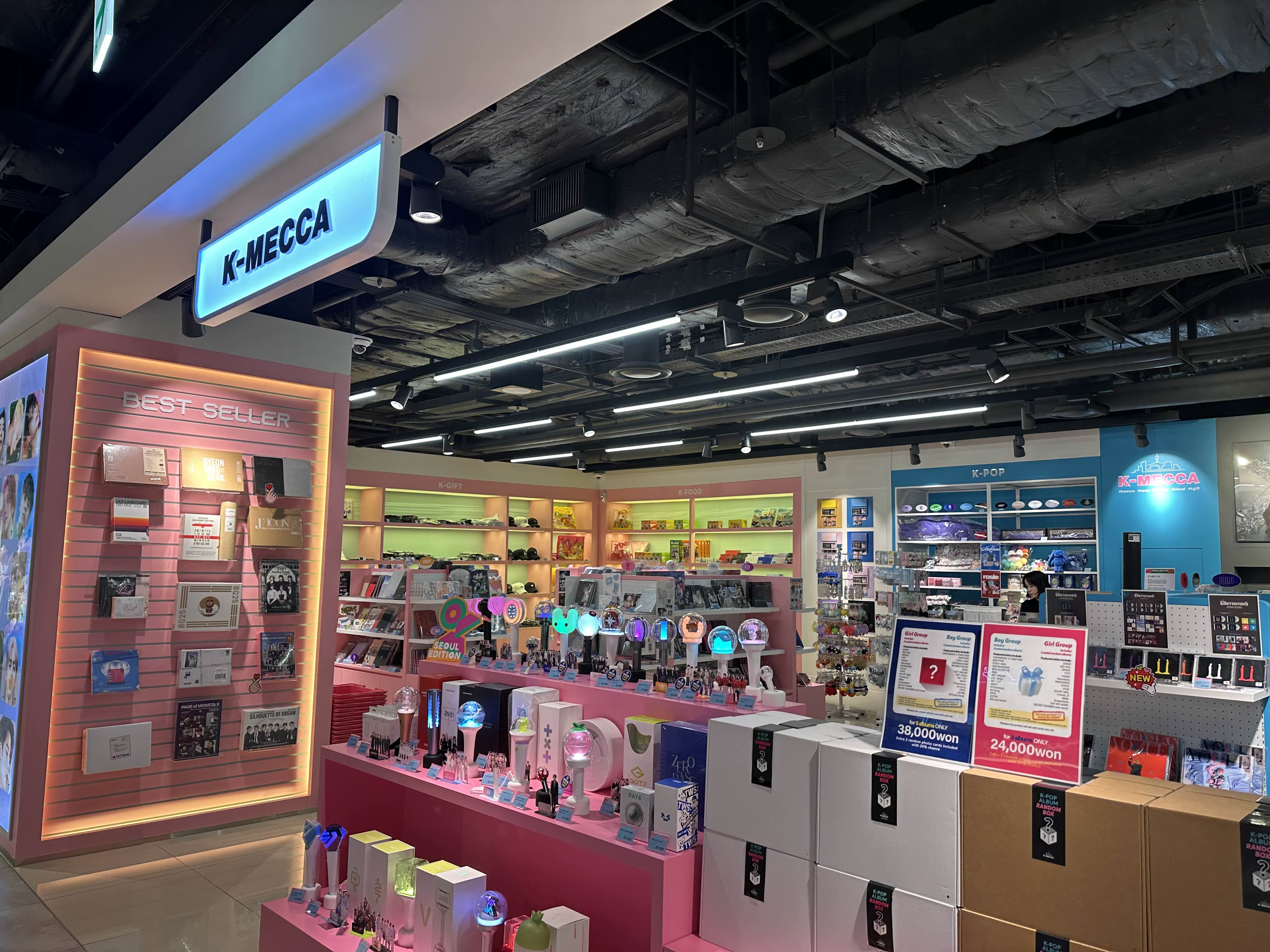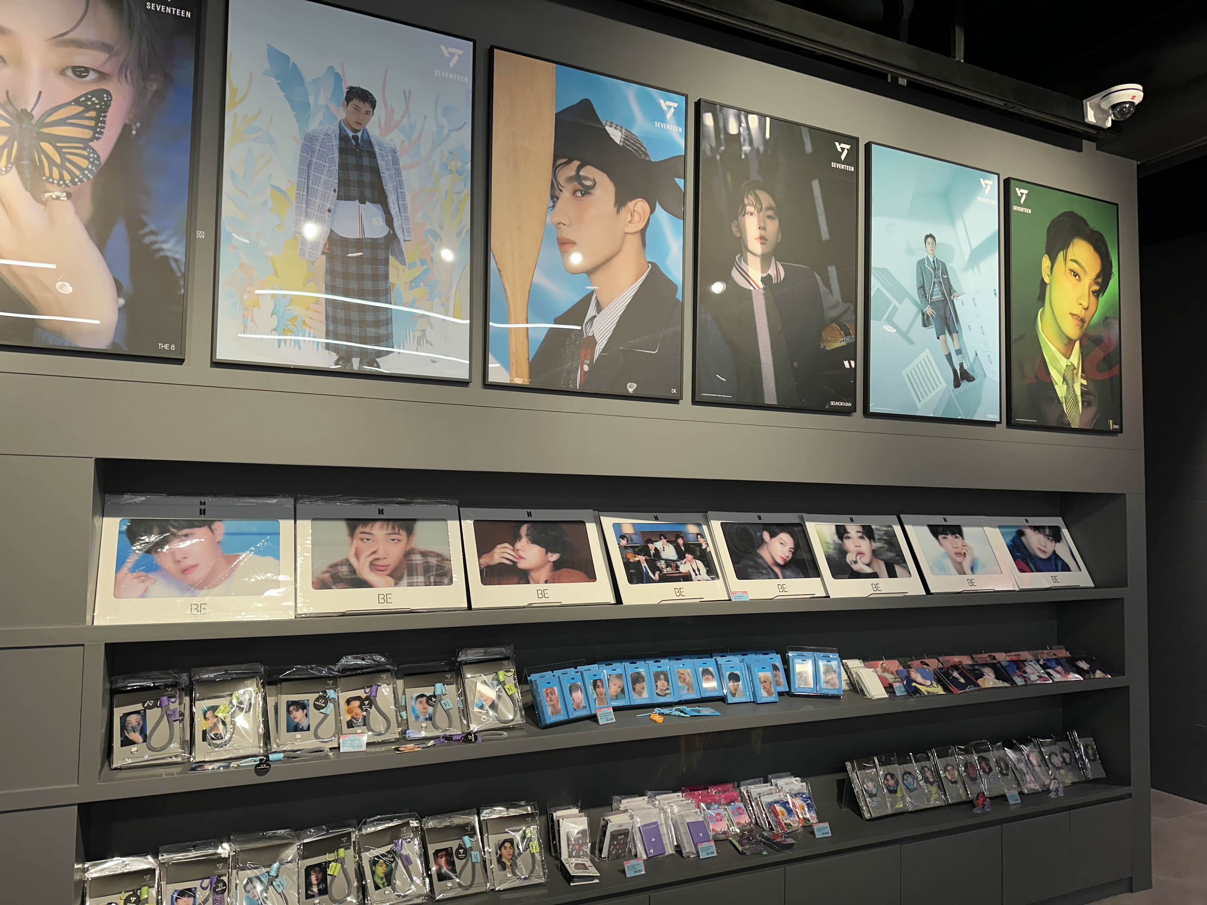 KPOP 샾으로 다양한 굿즈상품들이 진열되어 있어요.
