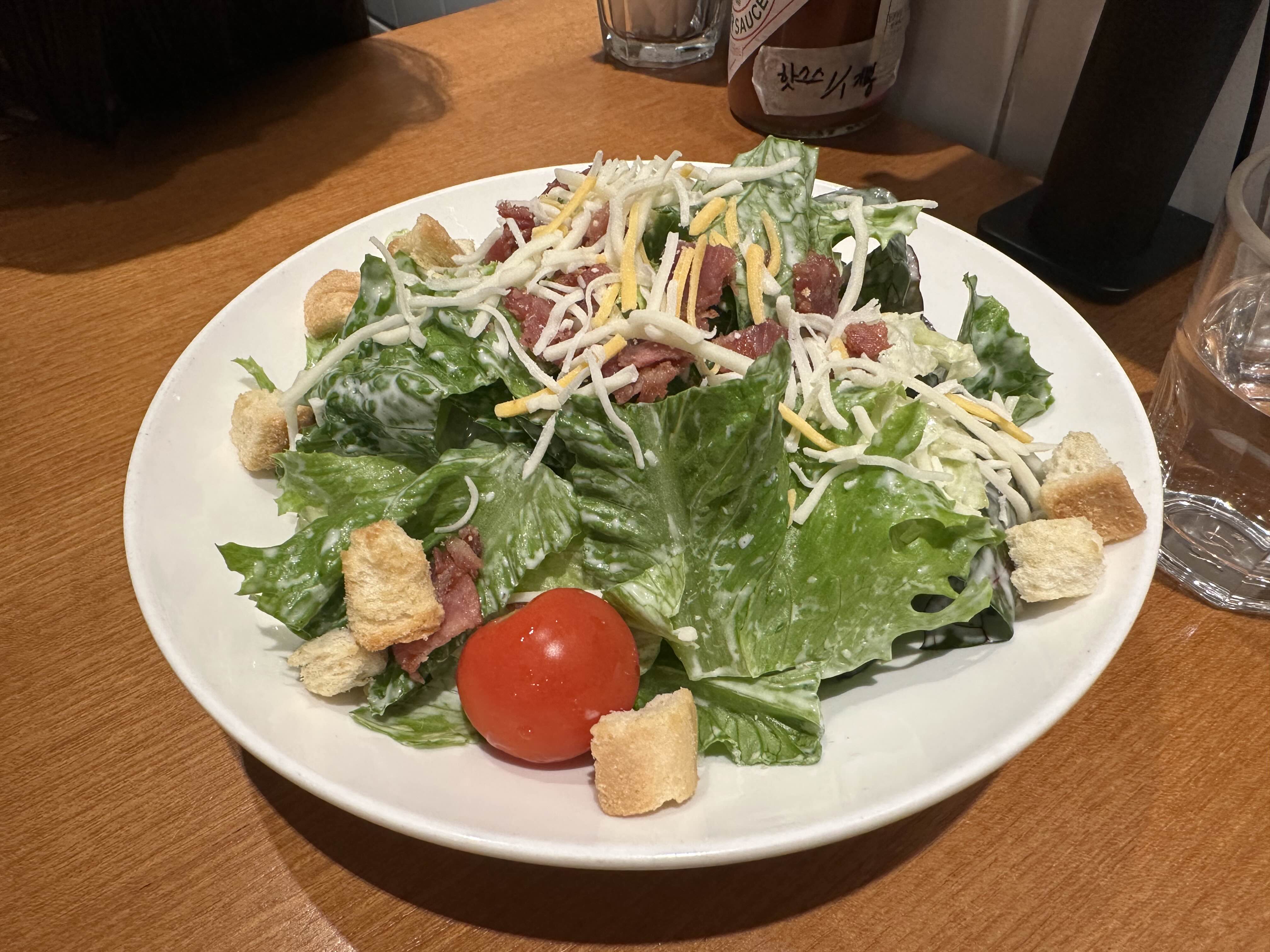 이날은 이벤트 행사가 진행으로 샐러드를 서비스로 주셨어요. 버섯 스파게티를 먹다 보면 느끼한 맛이 있는데