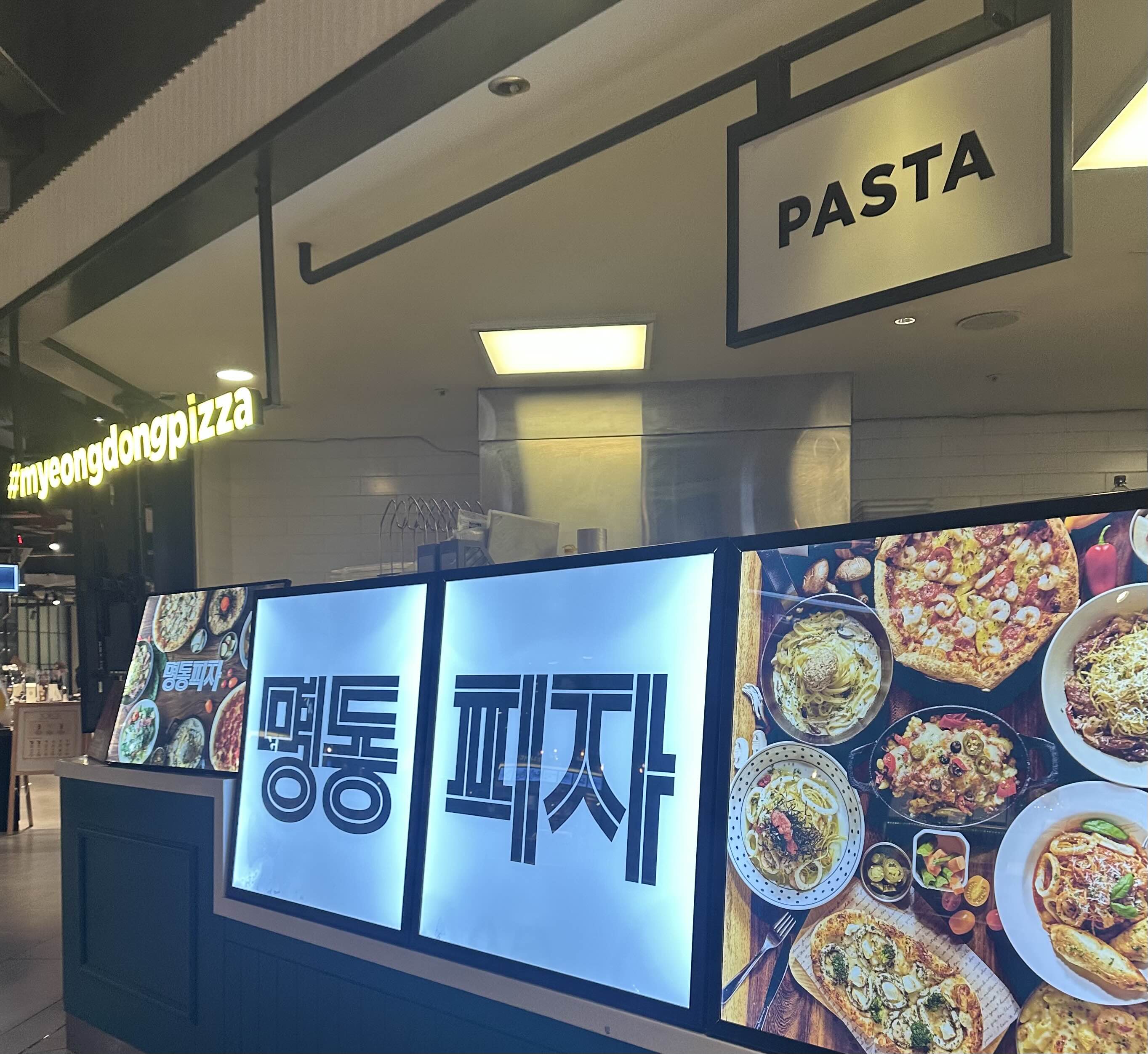 현대 아울렛 지하 2층에 위치한 명동 피자 점심시간대를