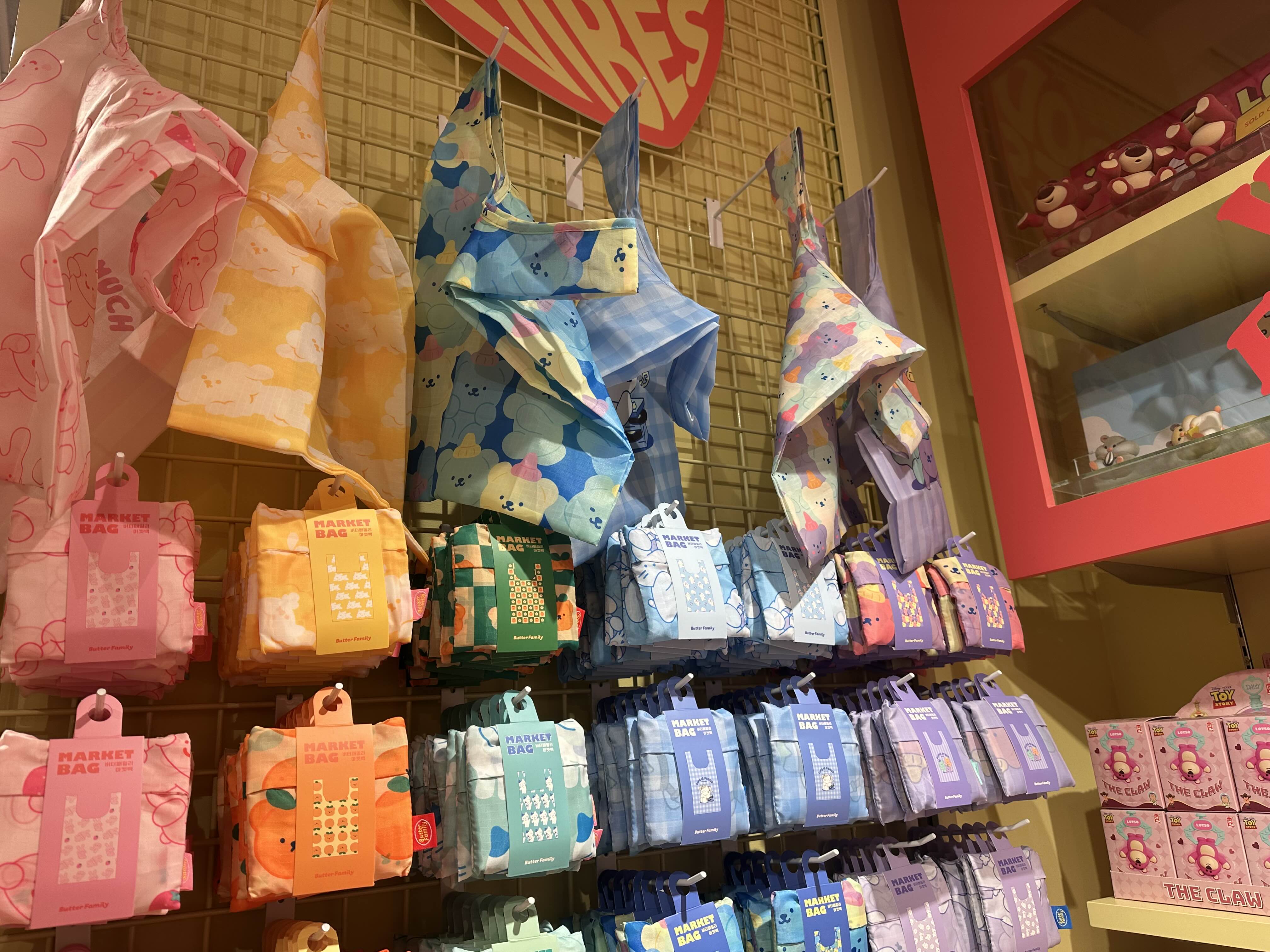 1층에는 제가 좋아하는 귀여운 캐릭터 모양으로 시장바구니 가방도 있어서 보는 재미도 있고 상품을 조금 더 특별하게 구입을 할 수도 있는 즐거운도 있어요.
