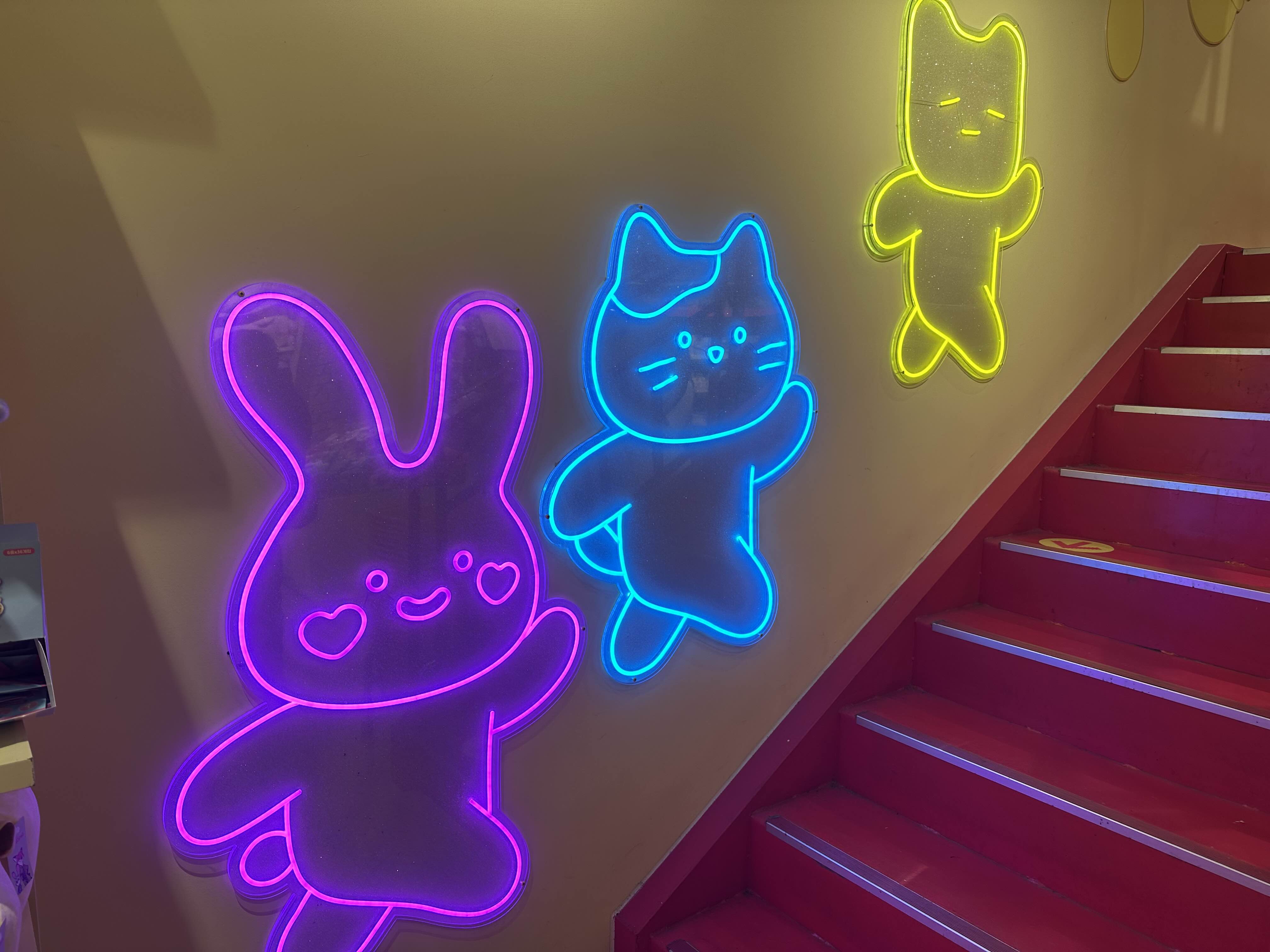 2층으로 올라가는 계단에는 사진 찍기 좋은 포토존 이 있어서 예쁜 배경으로 아이 사진도 찍어 줄 수 있어요. 귀여운 캐릭터 조명아래  딸과 함께 찰칵 ! 계단을 올라가는 길 도 그냥 신나는 순간입니다.