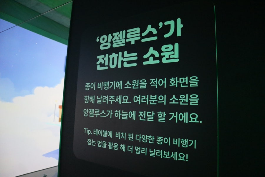 행운의 광이라는 포토존이 특히 인상적이었지만, 저만 그랬나 봅니다. 아이들은 이 공간보다는  소원 종이비행기 체험 공간을 더 좋아했어요. 소원을 적는 것부터 비행기를 접고 날리는 과정이 마냥 신기하고 재미있어하는 이곳에서 특히, 저희 신랑이 더 적극적으로 열심히 참여했답니다.  무슨 소원을 적었는지는 몰라도 아직까지도 비밀이라며 이야기를 안 하더라고요.
