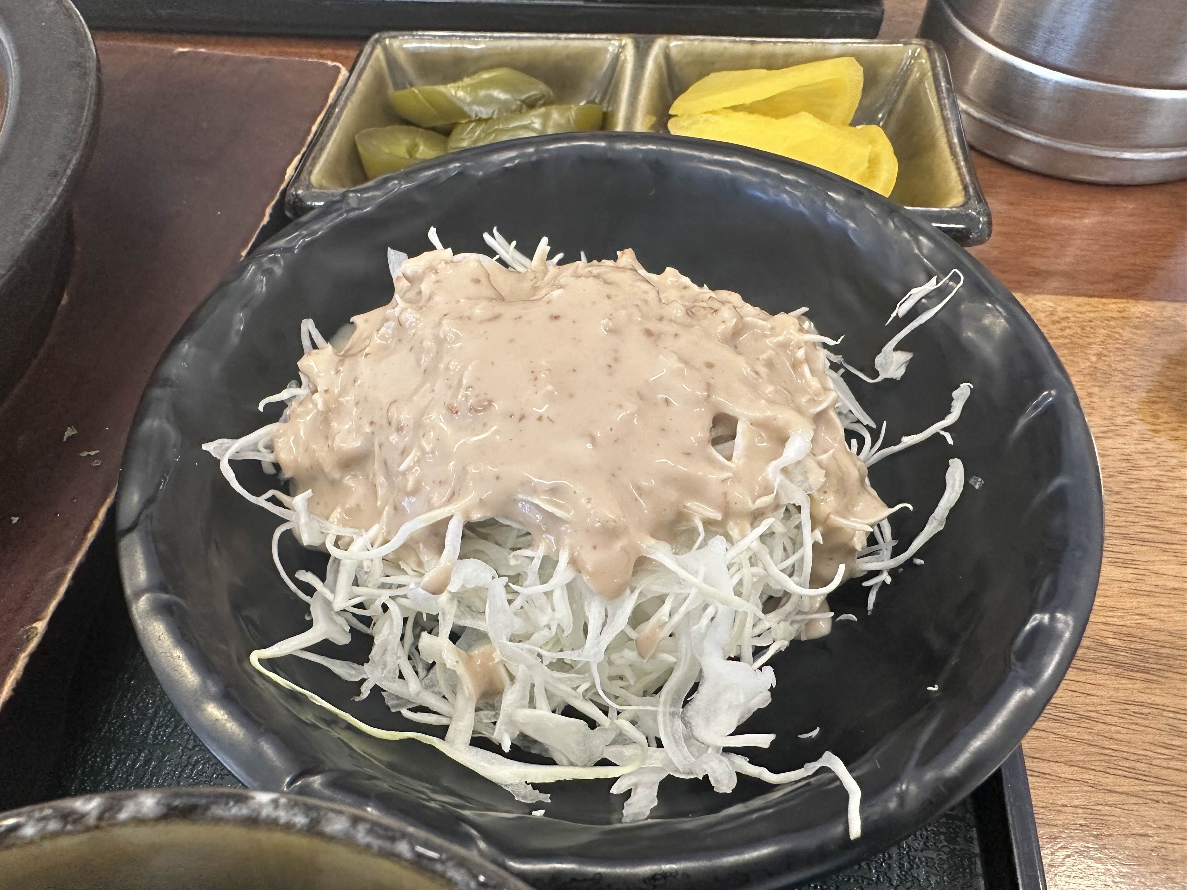 소스와 함께 있는 양배추를 곁들여서 돈가스와 함께 먹으면 완벽한 조합 말로 표현을 못해요.
