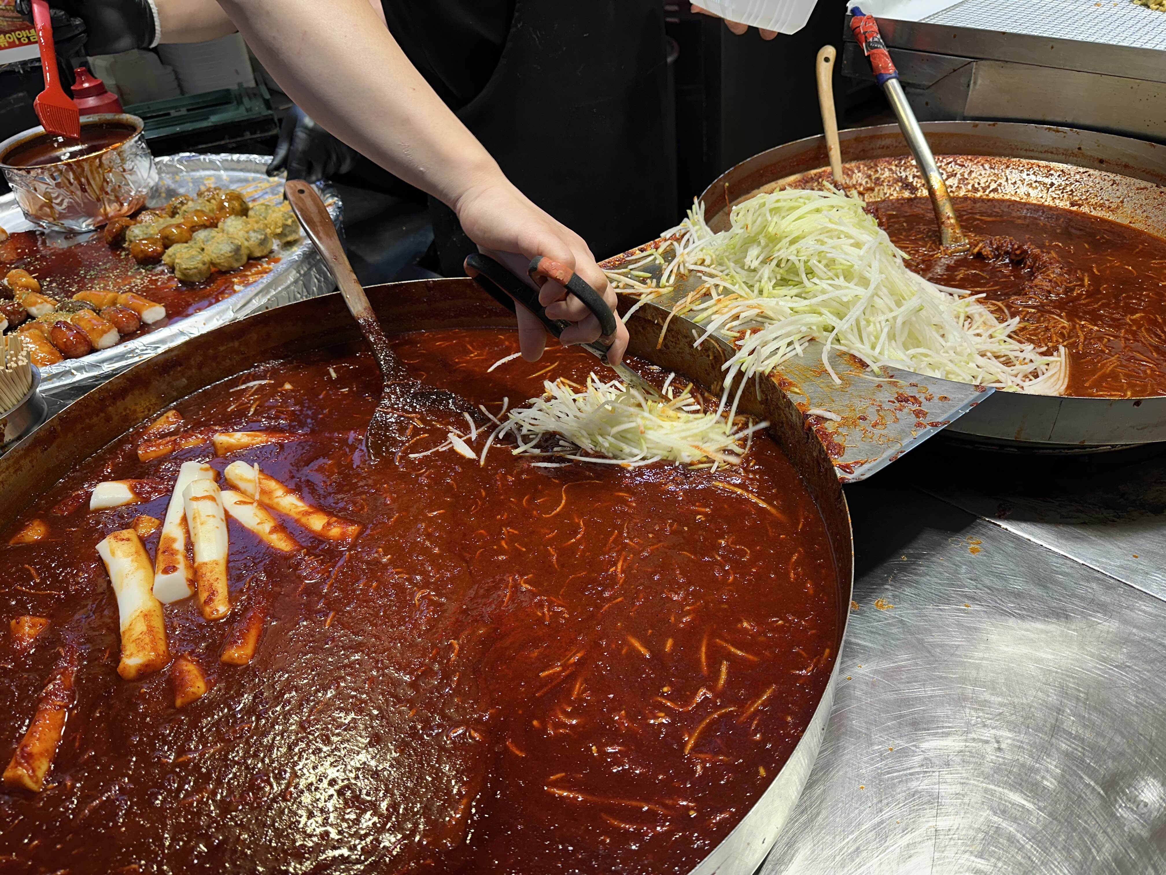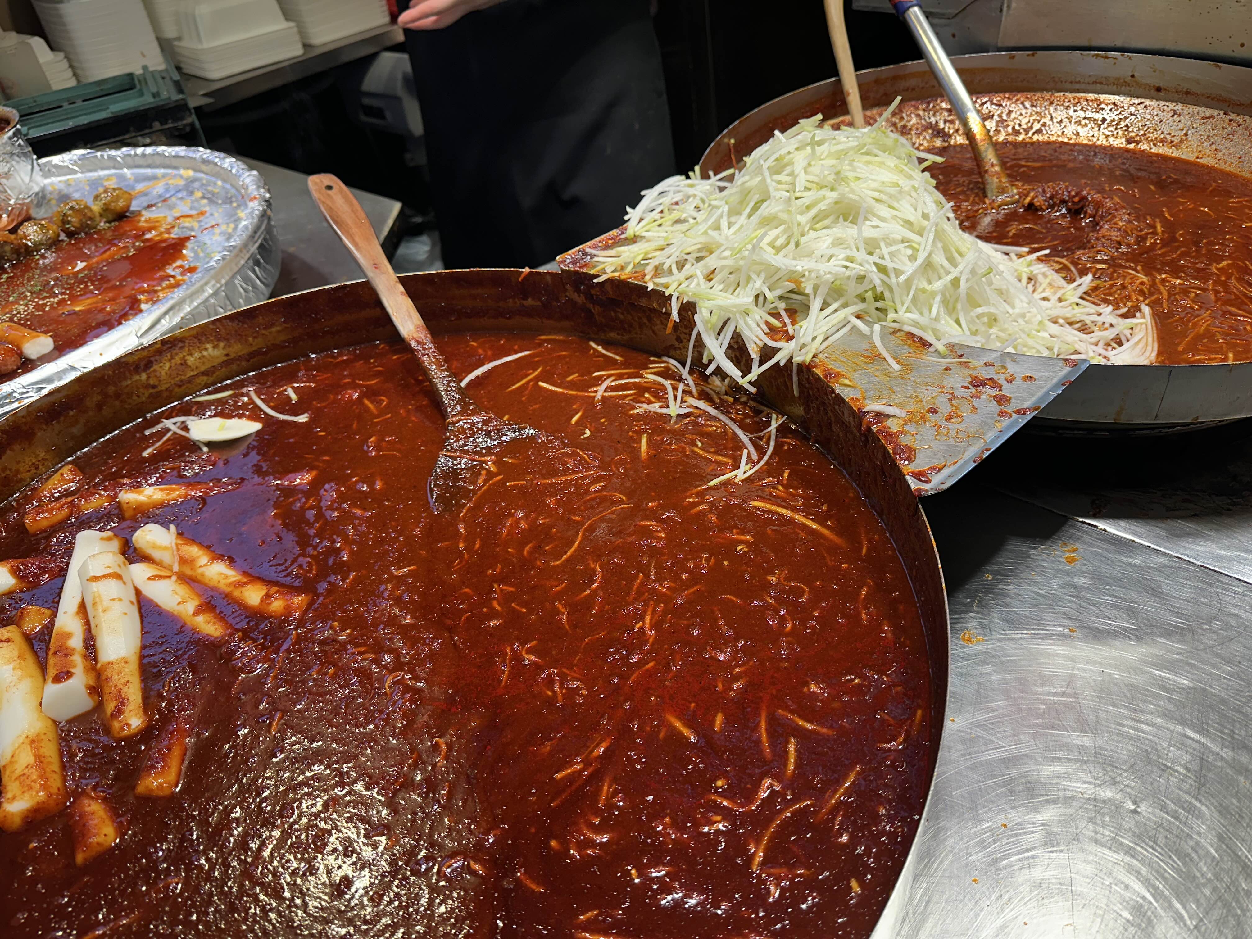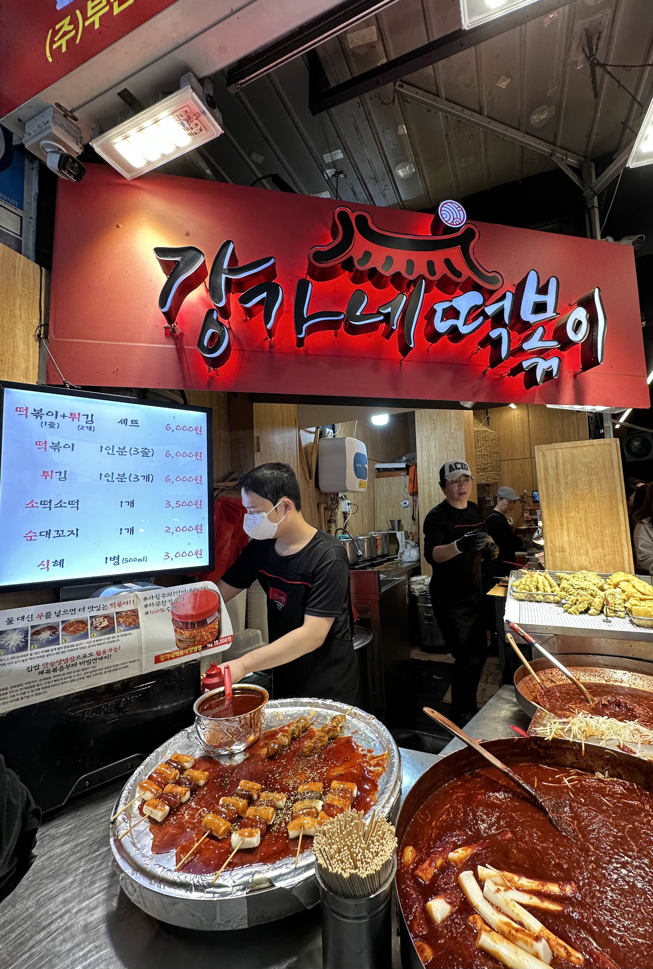 광장시장에서 독특한 스타일의 떡볶이 맛집으로 인기가 많아요.