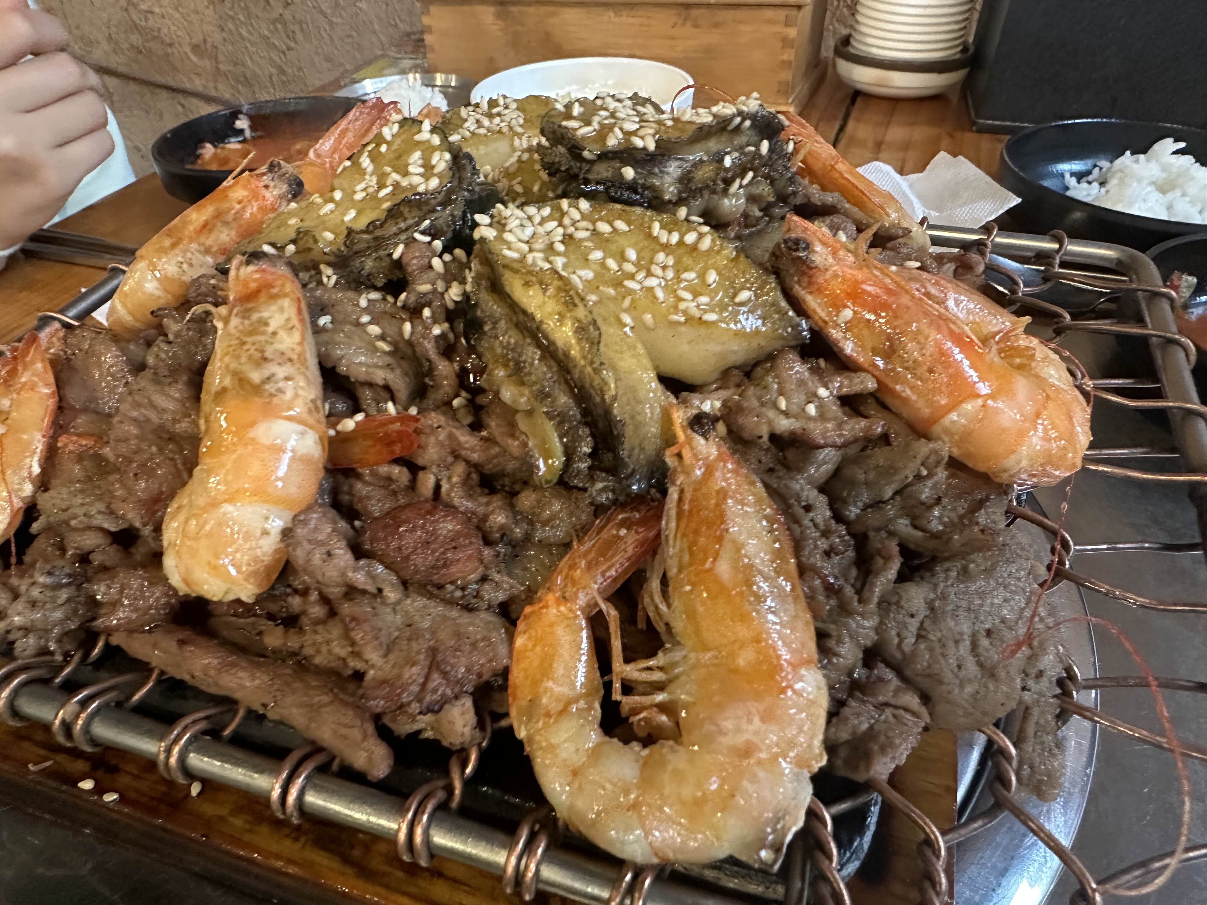 새우와 전복이 함께 나와서 고기와 해산물을 한 번에 즐길 수 있는 특별한 구성입니다.