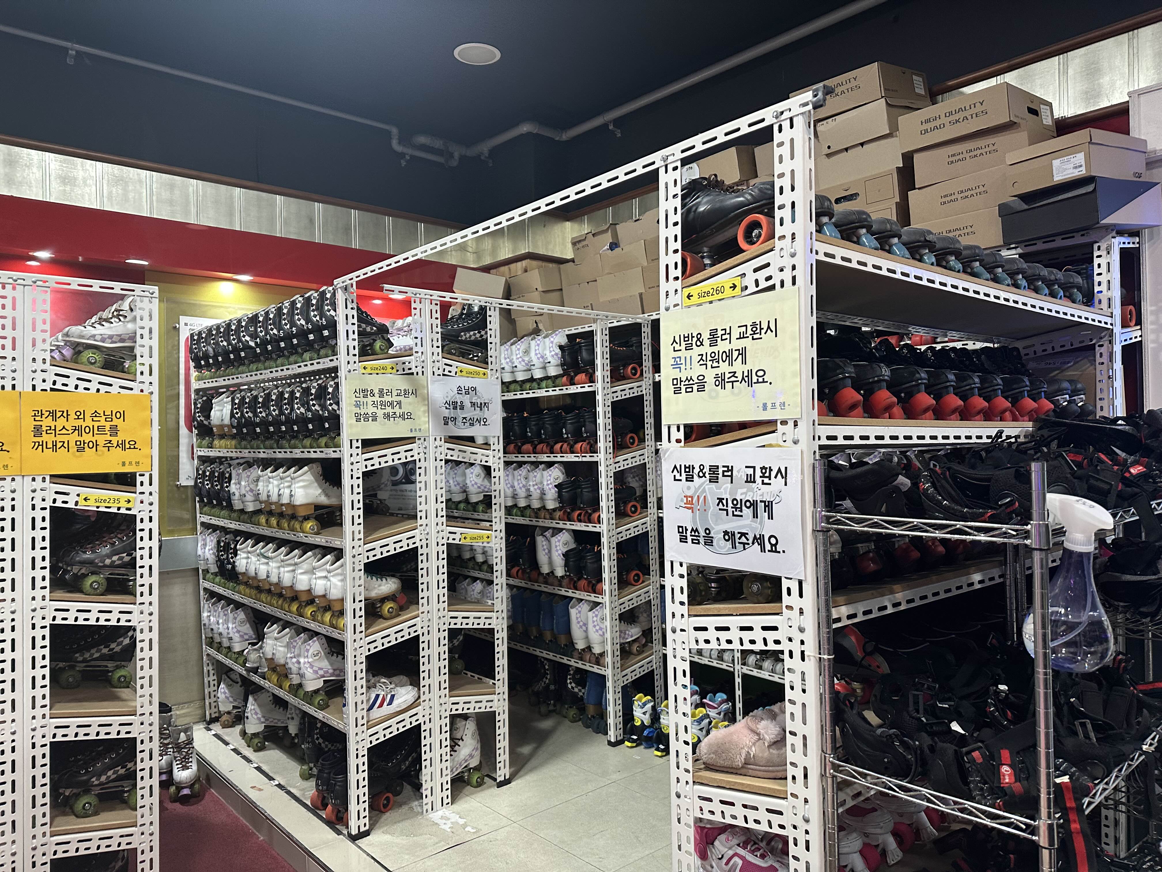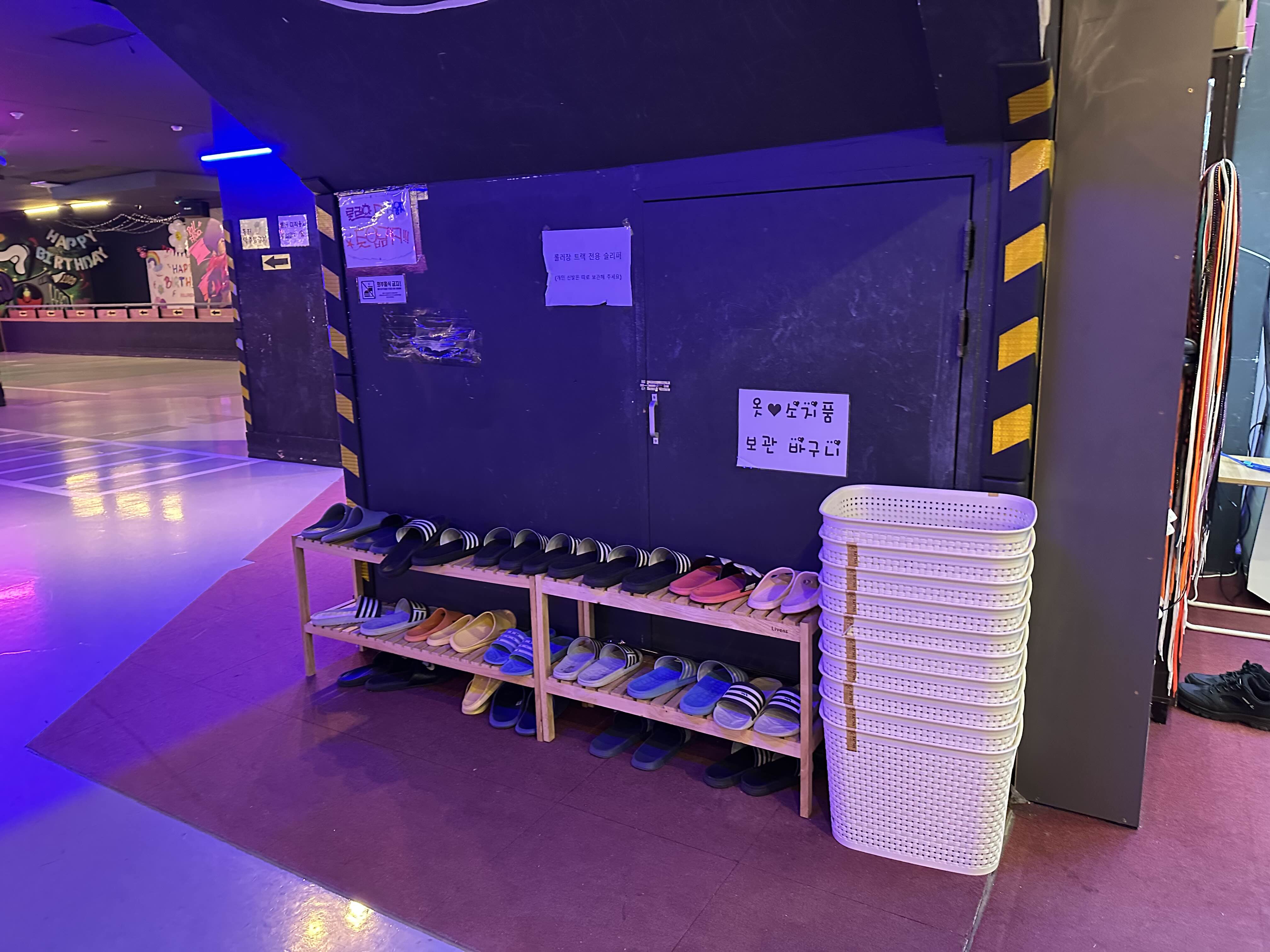 입장료 결제가 완료되면 , 사장님께서 아이들 신발 사이즈를 꼼꼼히 확인해 주세요. 이후 아이들 맞는 롤러스케이트 신발을 직접 신겨 주시는 경우도 있어요. 아이들이 신고 온 신발은 안전하게 별도로 보관해 주세요.
