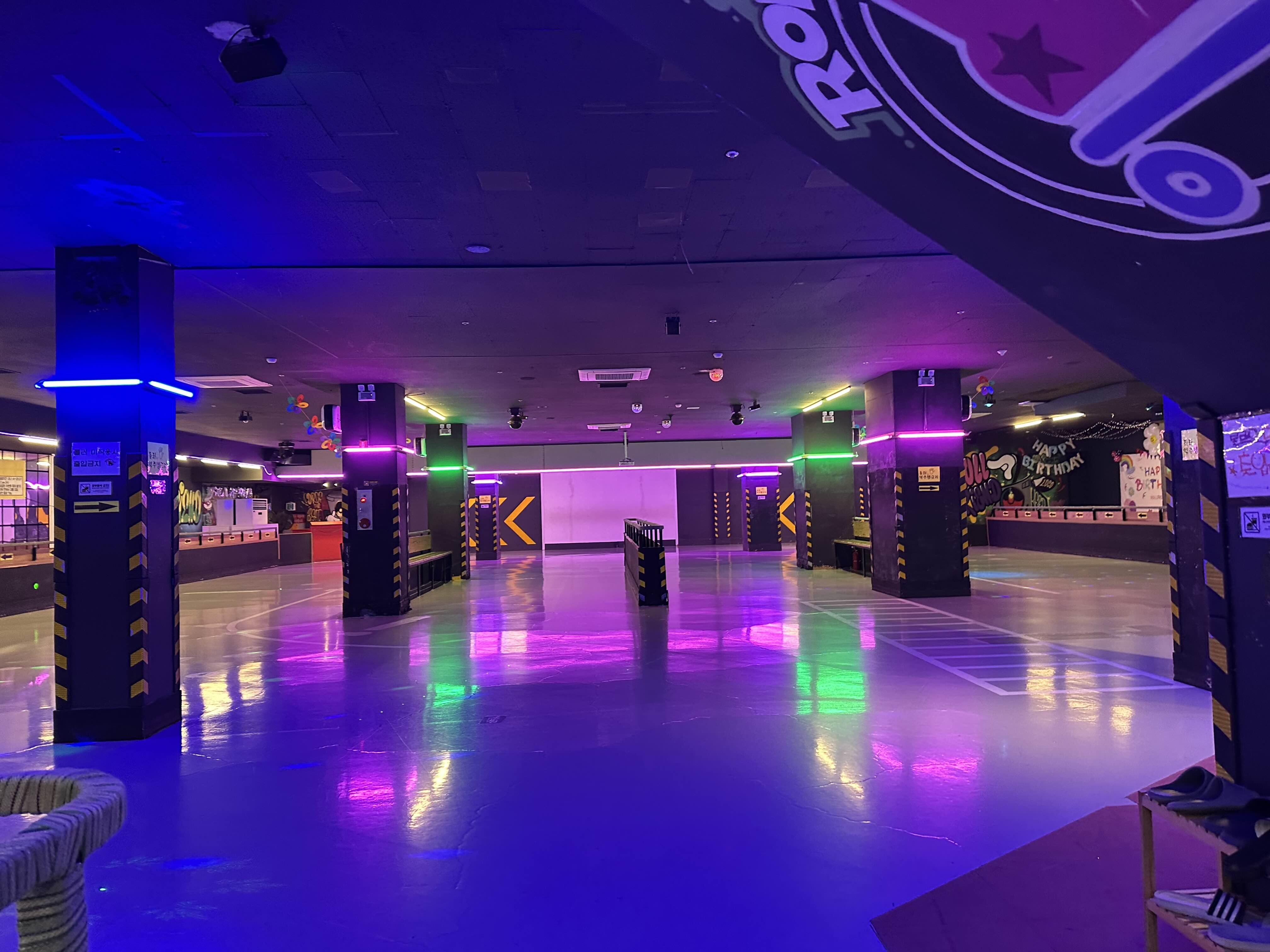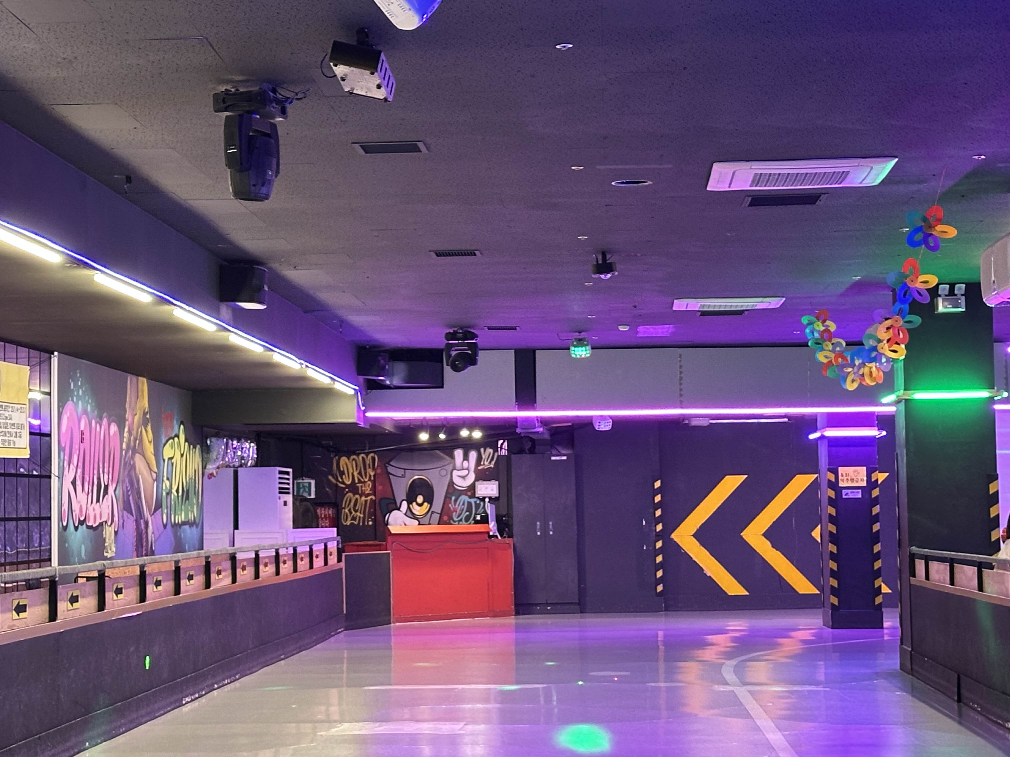 롤러스케이트장은 화려한 조명과 함께 마치 클럽에 온 듯한 신나는 음악으로 공간 가득 울려 펴져 활기찬 분위기를 만들어 줍니다.